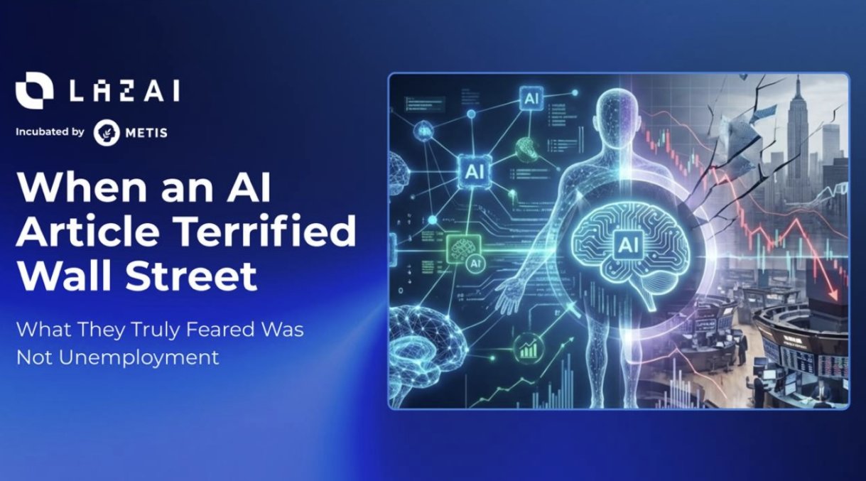 这也是为什么,Citrini 和 LazAI 其实不是互相否定,而是在谈同一时代问题的不同层次。前者提出的是症状:如果 AI 的收益主要流向资本和算力,而不是更广泛地进入社会收入结构,那么消费、信用和中产安全感都会先出问题。后者提出的是机制:如果社会不想把 agent 世界完全交给平台,也不想把它放任为终端无序,就必须发明新的身份、资产、支付、验证和治理结构。